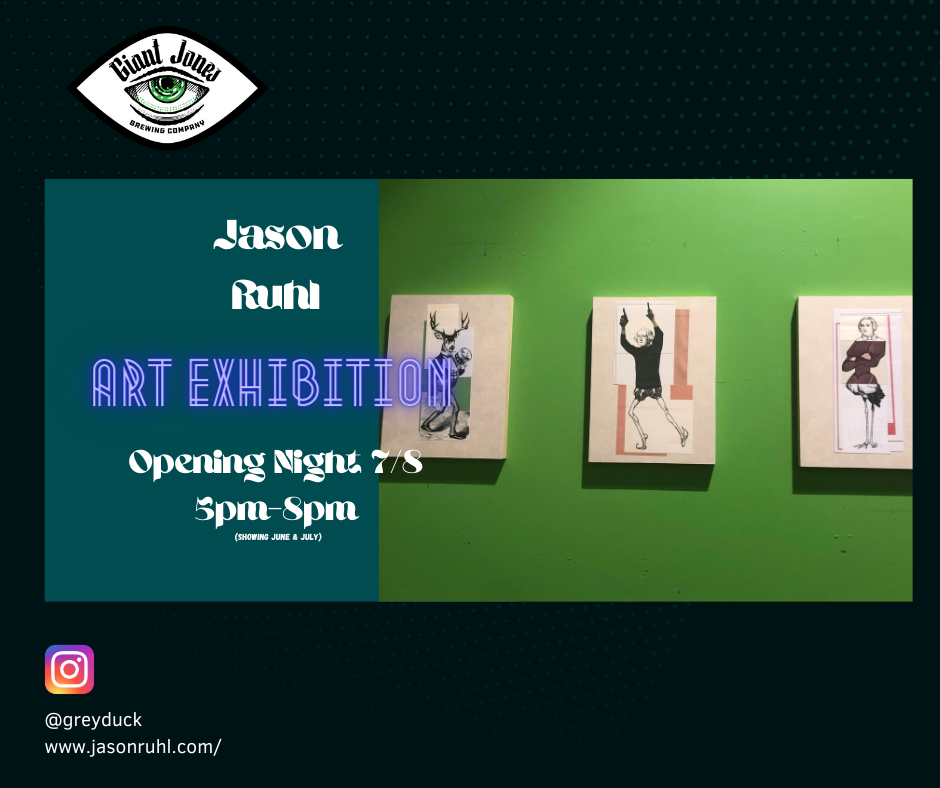 His work is currently on display, and will be through July. Join us for as we welcome Jason to the tasting room, for a fun night of beer & art!