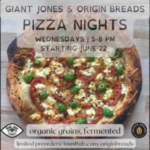 Every Wednesday we are teaming up with our neighbors down the hall at ORIGIN Breads for a Pizza Night! They will be making the pies, we will supply a dining area in our tasting room featuring our delicious beer. 🙂