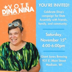Join us for a grassroots fundraiser in support of Dina Nina’s campaign for Wisconsin State Assembly!